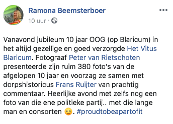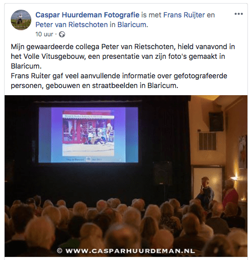 Wat een interessante avond! Goed voor de samenhorigheid van de bewoners van Blaricum. Hartelijk dank Peter en Frans. Inderdaad voor herhaling vatbaar.