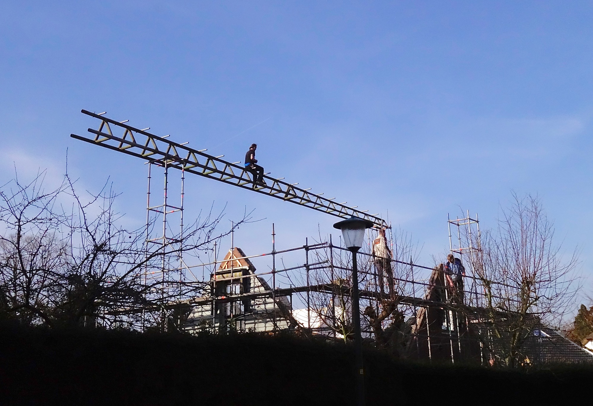 Werken op hoogte is volgens de ARBO alleen mogelijk als men veiligheidsmiddelen toe past.