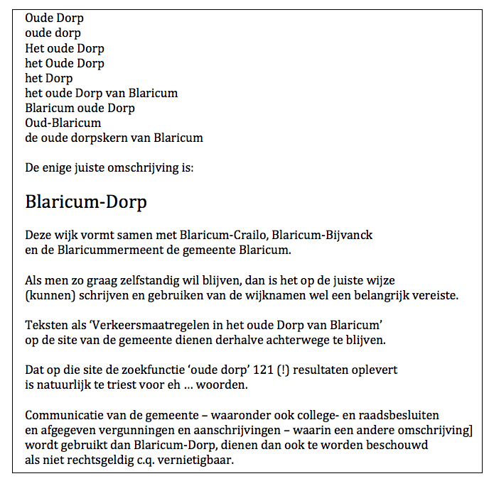 Volkomen eens, die onzinnige en volledig onjuist benaming, ‘ het Oude Dorp’ slaat nergens op. We hebben een Oude Dorpskern, die sinds 1967 de status heeft van beschermd Dorpsgezich. LikeLike Beantwoorden