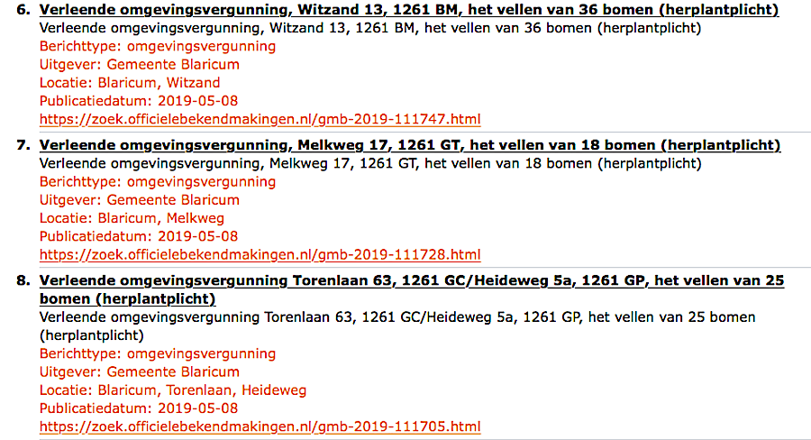 Ach, ik zeg kappen die rotbomen. En als je dan toch consequent wil blijven , die paar boerderijen die er nog staan; afbreken en een mooie bungalow voor terug. Voor de mensen die uit Blaricum komen en/of er al heel lang wonen en Blaricummer zijn geworden; kom toch in actie!