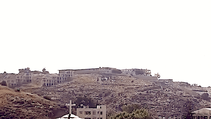 Niet dus – gewoon (…) een uitsnede van een foto van een Grieks vakantiedorpje met wat nieuwbouw op de heuvels …