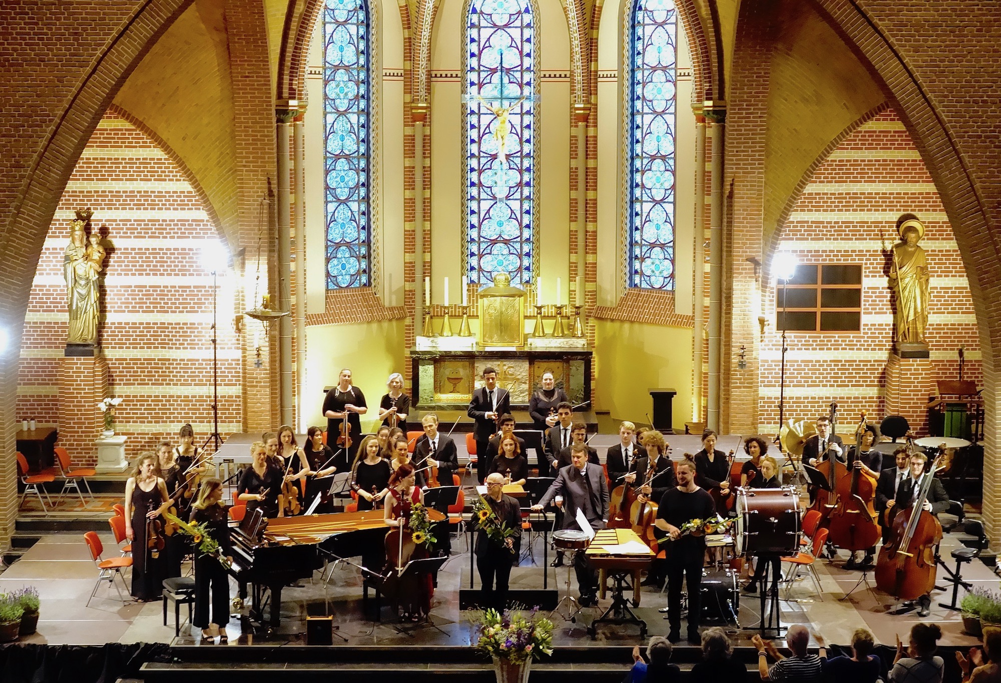 … in de Vituskerk voor componist David Lang van Pierced en de uitvoerenden Maya Fridman, cello, Helena Basilova, piano, Konstantyn Napolov, percussie en het Blaricum Music Festival Orchestra onder leiding van Mathieu Herzog.