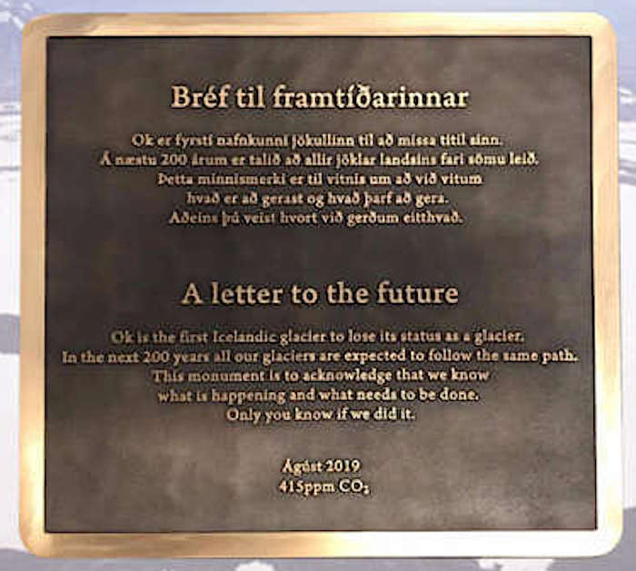 IJsland: Het monument wordt volgende maand geplaatst op de plek waar tot 2014 de Okjokull, ook wel de Ok-gletsjer genoemd, lag. De gletsjer is inmiddels grotendeels gesmolten. Volgens wetenschappers komt dat door de opwarming van de aarde. De vrees is dat ook de andere 400 gletsjers die IJsland telt dat lot zal treffen.