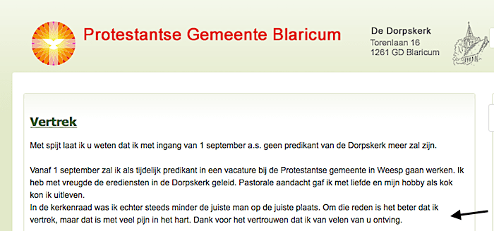 Naar verluidt zijn de mutaties voor de landelijke PKN aanleiding om (weer) een visitatie uit te voeren. Van der Sijs is de derde achtereenvolgende dominee die met/uit onmin vertrekt.