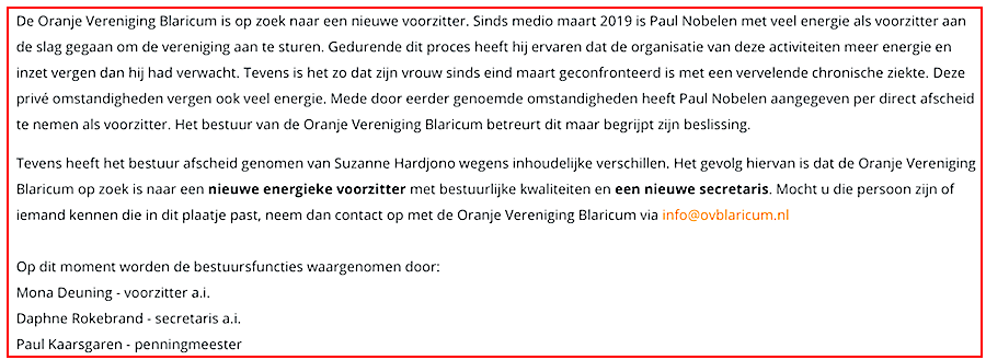 Wat (bij Paul Nobelen) ‘meer energie en inzet vergen dan verwacht’ en wat (bij Suzanne Hardjono) ‘inhoudelijke verschillen’ betekenen, is momenteel niet duidelijk. Daarover later wellicht meer.