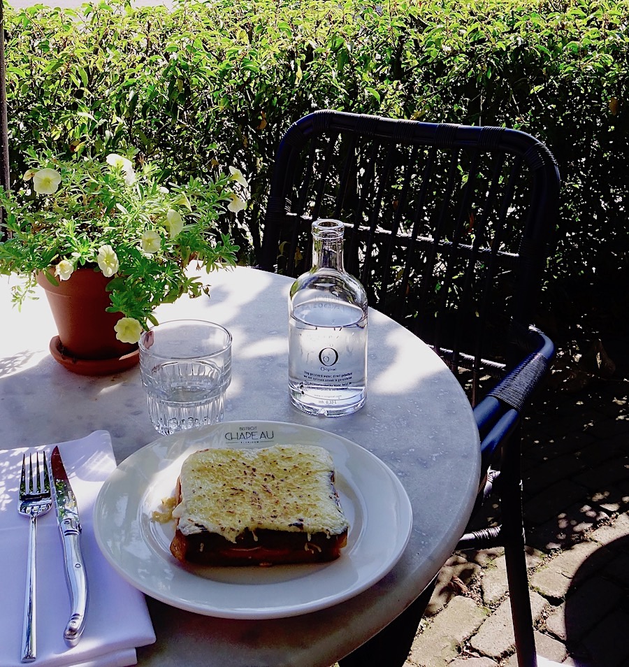 … ook een uitstekende croque monsieur (tosti) werd genuttigd op het plezierige en comfortabele terras. Mét een flesje bruiswater.