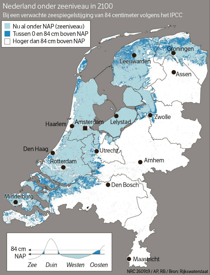 Zelfs al zou het scenario van zeespiegelstijging van het IPCC uitkomen – en een deel van u doorgaat met niet naar Greta Thunberg te luisteren, maar haar vanwege uiterlijk en gedrag belachelijk blijft maken – dan nog houden we hier droge voeten en banden. Dus lekker niets doen, of toch maar wel …?