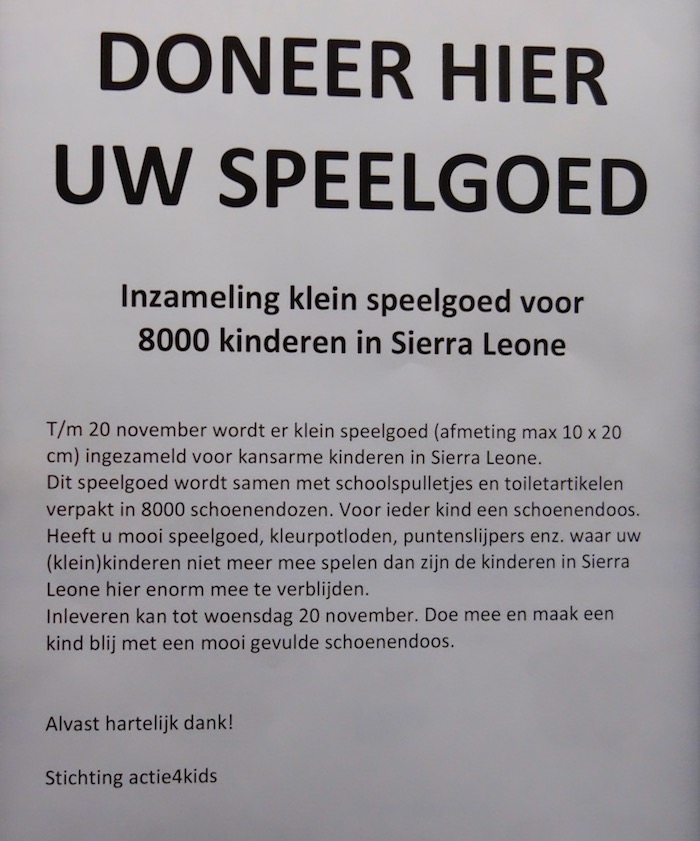 Speelgoed over? Oog op Blaricum dingen, goed bezig, nieuws, samenleving 14 november 2019 Kunt u afleveren bij AH – voor onderstaand goed doel. Delen kan hier: Share op Facebook (Opent in een nieuw venster) Facebook Delen op X (Opent in een nieuw venster) X Email a link to a friend (Opent in een nieuw venster) E-mail Afdrukken (Opent in een nieuw venster) Print Delen op WhatsApp (Opent in een nieuw venster) WhatsApp Meer Share on Threads (Opent in een nieuw venster) Threads Vind-ik-leuk Aan het laden... Gerelateerd Gepubliceerd door Oog op Blaricum Bekijk alle berichten van Oog op Blaricum Gepubliceerd 14 november 2019