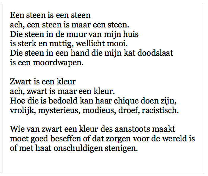 Gedicht: Zwart Oog op Blaricum gedicht 27 november 20199 september 2020 Delen kan hier: Share op Facebook (Opent in een nieuw venster) Facebook Delen op X (Opent in een nieuw venster) X Email a link to a friend (Opent in een nieuw venster) E-mail Afdrukken (Opent in een nieuw venster) Print Delen op WhatsApp (Opent in een nieuw venster) WhatsApp Meer Share on Threads (Opent in een nieuw venster) Threads Vind-ik-leuk Aan het laden... Gerelateerd Gepubliceerd door Oog op Blaricum Bekijk alle berichten van Oog op Blaricum Gepubliceerd 27 november 20199 september 2020