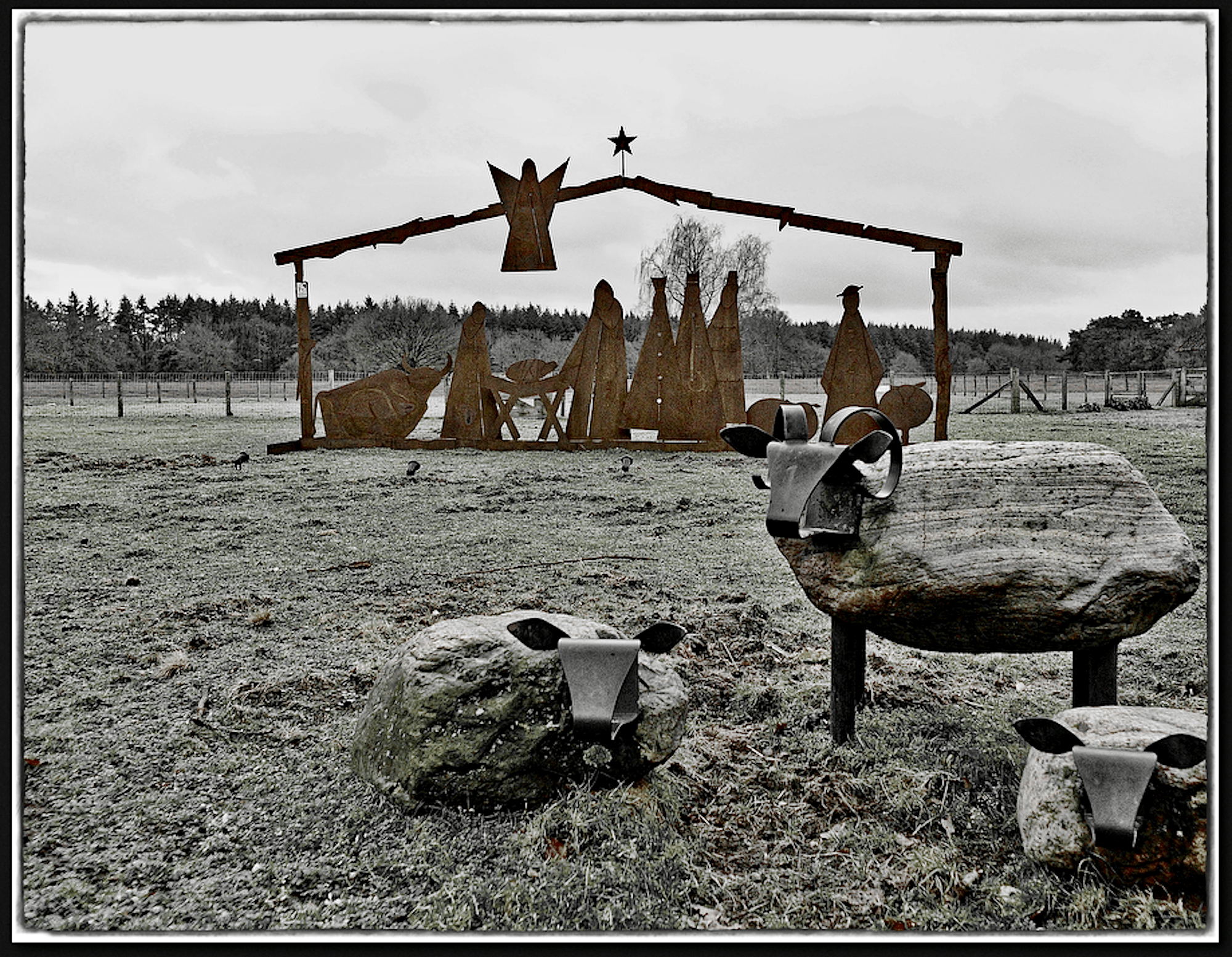 Bij de schaapskooi – gemaakt door staalkunstenaar Jan Zwagerman. Het heet Temporary Residence – tijdelijke verblijfplaats.