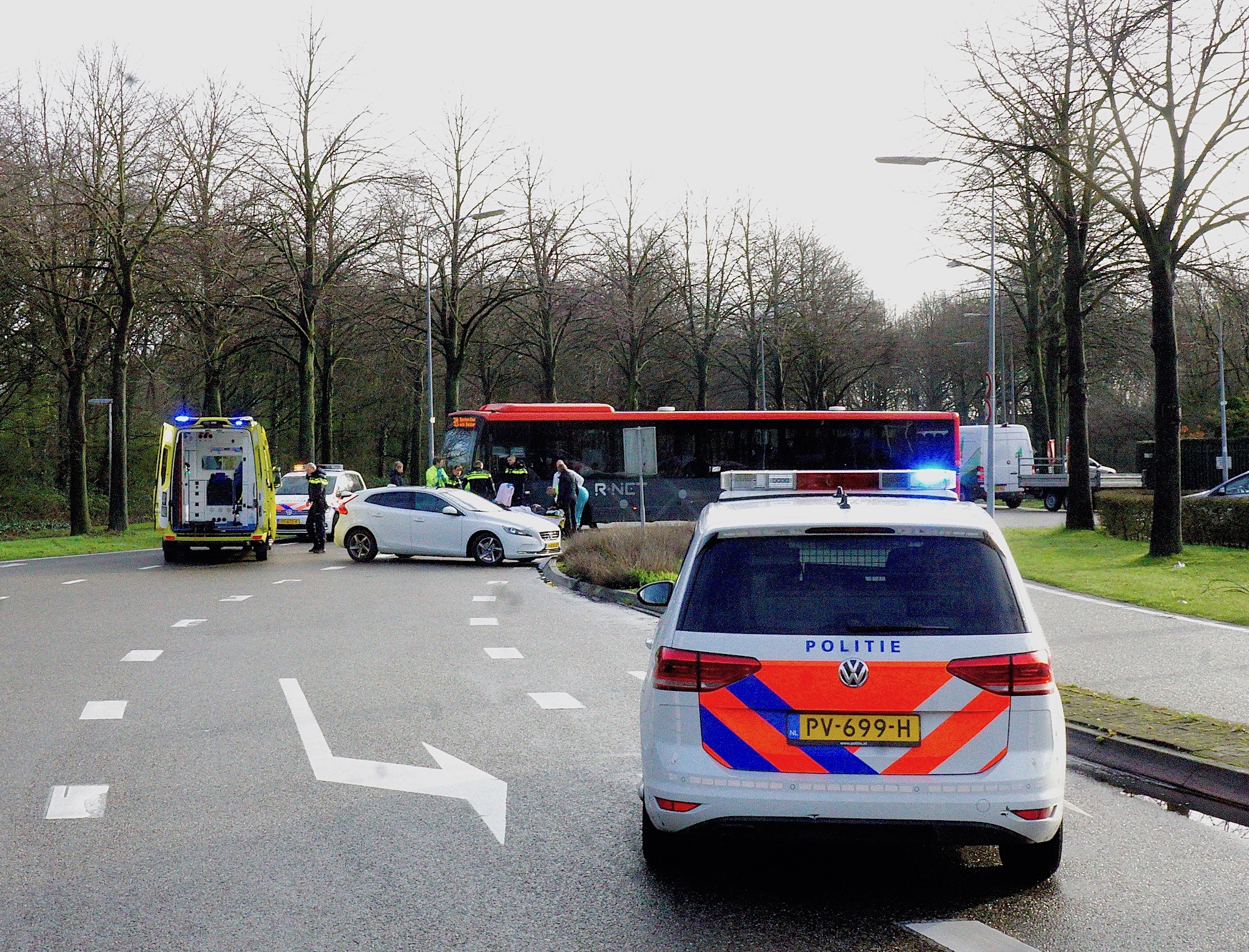Stichtseweg, 09:01 uur: een bus van lijn 320 raakte bij het oprijden van de weg een overstekend persoon. In eerste instantie werd ook de traumaheli opgeroepen. Letsel onbekend maar leek mee te vallen, persoon de ambulance in, trauma gecanceld.