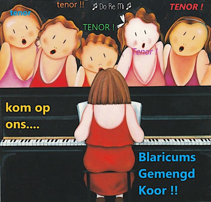 Het BGK (Blaricums Gemengd Koor) is al een tijdje aan het zoeken naar tenoren. Op onze zoektocht dienen zich wél steeds nieuwe leden aan zoals bassen, alten en sopranen, maar wáár blijven die tenoren ??? Het zou zó fijn zijn om de balans terug te krijgen in de stemmen! Op woensdagavond van 19.45u tot 22.00u repeteren we in de Blaercom aan de Schoolstraat. U mag altijd komen luisteren en misschien voorzichtig meezingen of dít koor geschikt voor u is. Meer info op http://www.bgk-koor.nl.