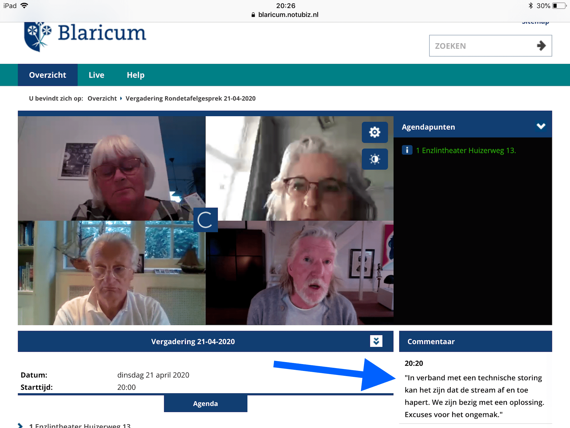 Gisterenavond vond een digitale RTG plaats. Naar verluidt is het streamen over het algemeen goed verlopen.