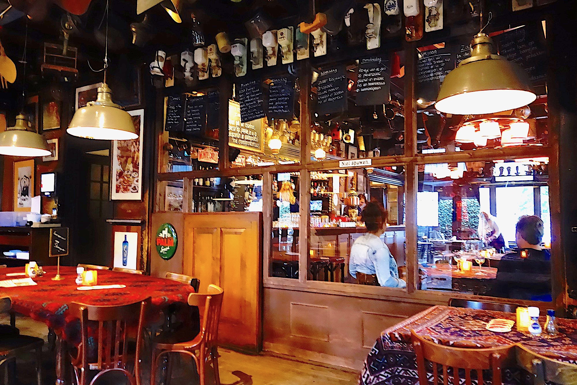 Waardoor er twee van elkaar gescheiden ruimten zijn ontstaan met respectievelijk 30 en 25 zitplaatsen. Ook met het eenrichtingverkeer voor binnenkomen, vertrek en naar het toilet gaan wordt getracht de kans op besmetting te verkleinen.