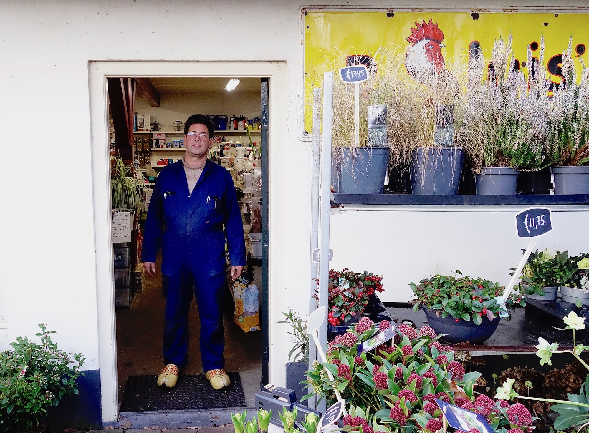 Lambert Vos: ‘Van alles voor de huisdieren en andere dieren, hè? Dus we zijn gewoon open. En bij de stal hebben we nog wel wat kerstboompjes staan. Maar ’t is een rare tijd – ben er niet erg gerust op waar dit allemaal heen gaat.’