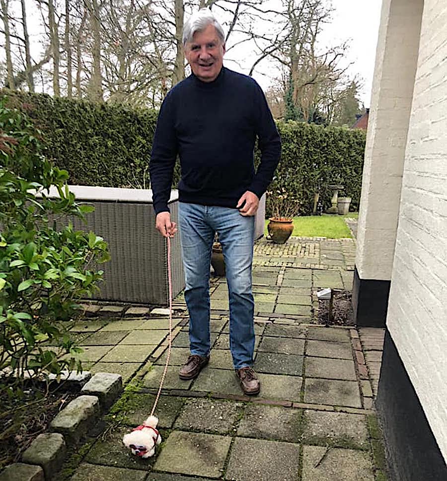 dus het zal allemaal wel loslopen. Eh … aangelijnd, hè? Haha!’