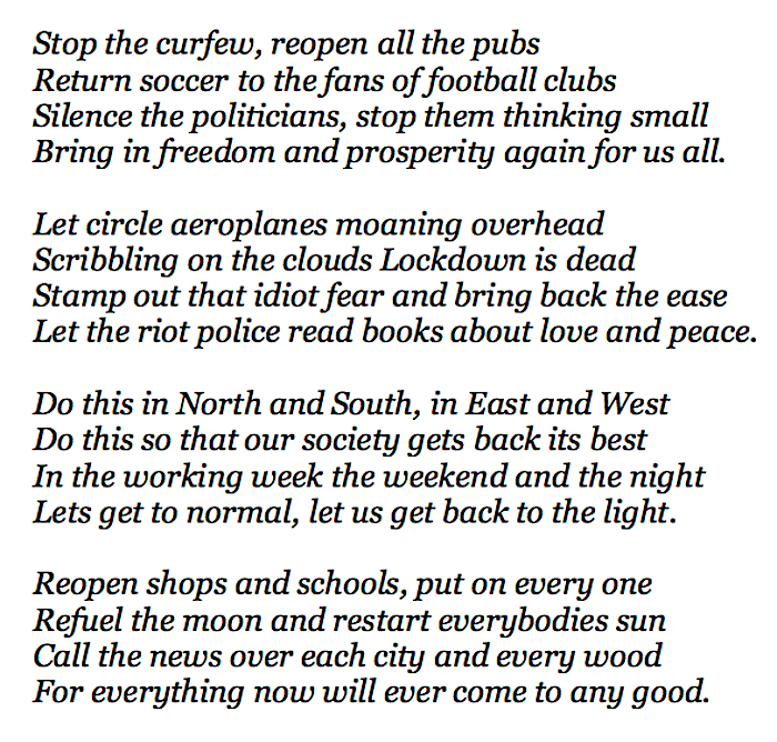 Bewerking van het bekende gedicht Stop all the clocks van W.H. Auden.