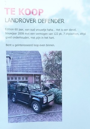 landrover marg 2 – 1 Oog op Blaricum 18 oktober 2024 Delen kan hier: Share op Facebook (Opent in een nieuw venster) Facebook Delen op X (Opent in een nieuw venster) X Email a link to a friend (Opent in een nieuw venster) E-mail Afdrukken (Opent in een nieuw venster) Print Delen op WhatsApp (Opent in een nieuw venster) WhatsApp Meer Share on Threads (Opent in een nieuw venster) Threads Vind-ik-leuk Aan het laden... Gepubliceerd door Oog op Blaricum Bekijk alle berichten van Oog op Blaricum Gepubliceerd 18 oktober 2024