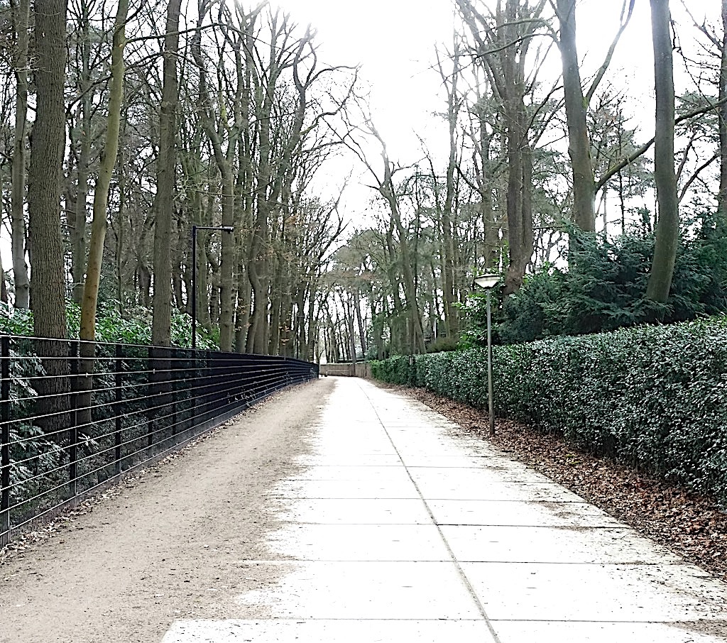 – Vergunde rijplaten waarover menigeen denkt dat het zo hoort – particuliere beveiligingscamera die op de openbare weg staat gericht – gezellig hekwerk met daarachter groene ‘muur’ – daartegenover ook zo’n ‘natuurwal’ – straatverlichting die allang had. moeten worden vervangen – droog weertje.