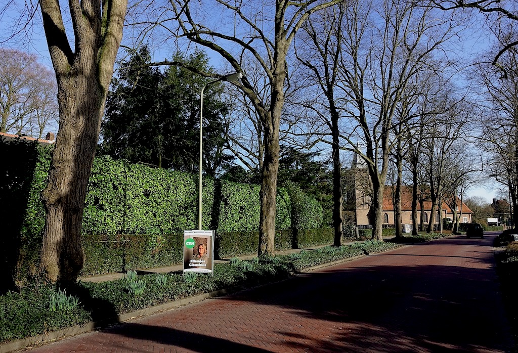 Bij herhaling is Oog gemeld dat de verkiezingsborden in de openbare ruimte alleen mogen worden bevestigd aan lantaarnpalen (dus niet aan verkeersborden) en dat dit mag vanaf woensdag 4 maart. (In tegenstelling tot bijvoorbeeld de andere BEL-gemeenten Laren en Eemnes en ook Huizen waar de ‘stembusstrijd’ via borden en spandoeken over de weg al volop gaande is). Dus: is de lokale CDA niet goed geïnformeerd, of gelden er voor deze partij andere regeltjes? (Foto gemaakt vanochtend 10:30 uur.) Vraag blijft overigens waarom het Blariucmse beleid in deze afwijkt van dat in de buurgemeenten …