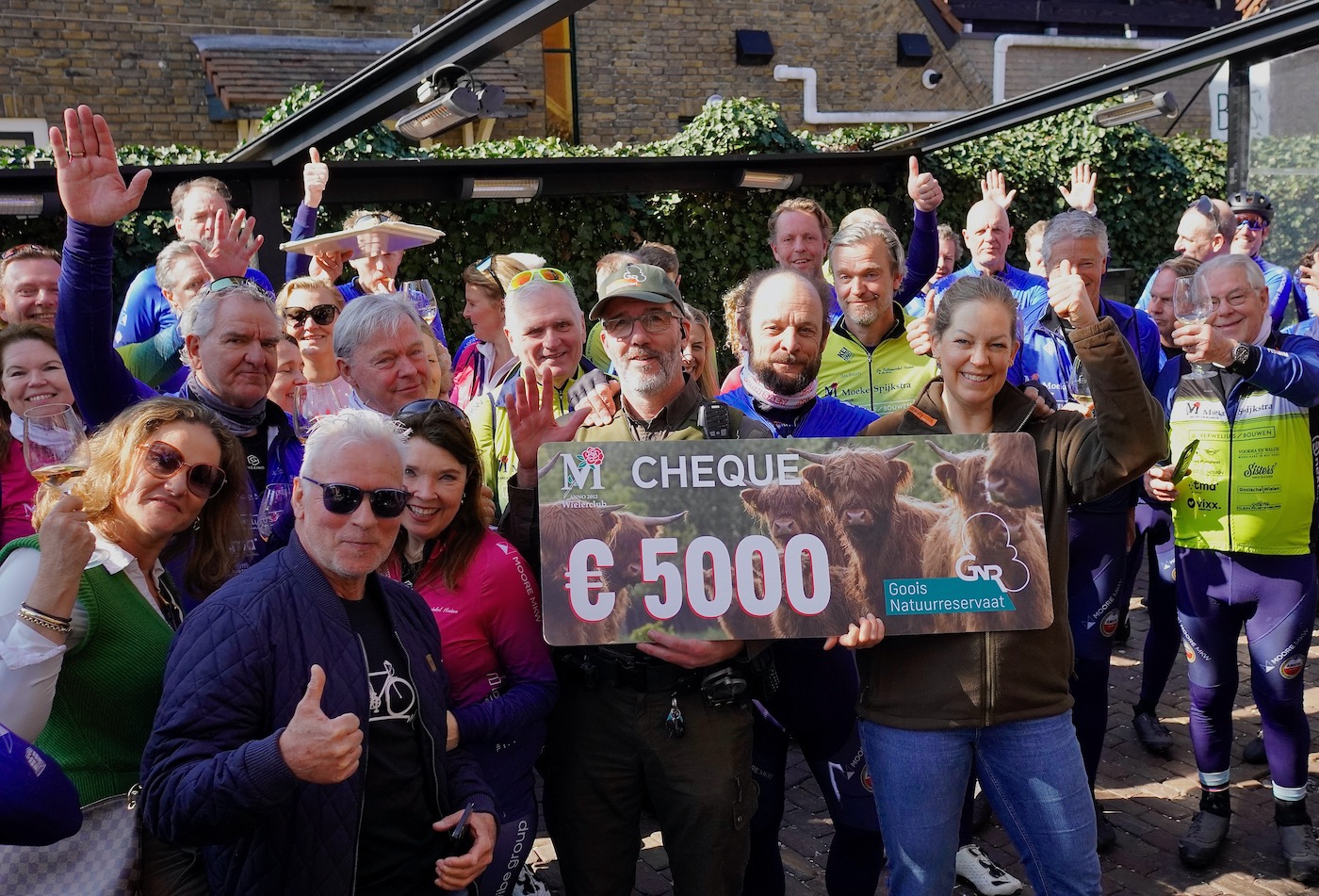 Bij monde en hande van veurzitter Eduard Schaepman van Moeke Spijkstra Wielerclub kreeg het Goois Natuurreservaat GNR vanmiddag een cheque overhandigd. Boswachter John en Coördinator Fondsenwerving en Communicatie Eva waren er zeer blij mee. Het geld mag worden besteed aan het onderhoud van de fiets- en mbt-paden, eventueel wat uitbreiding en waar nodig een stronkje verwijderen.