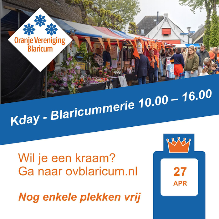 Kraam op Kday … Oog op Blaricum aangeleverd, cultuur, samenleving, zaken 8 april 2026 … en we hopen dat het je bevalt. Delen kan hier: Share op Facebook (Opent in een nieuw venster) Facebook Delen op X (Opent in een nieuw venster) X E-mail een link naar een vriend (Opent in een nieuw venster) E-mail Afdrukken (Opent in een nieuw venster) Print Delen op WhatsApp (Opent in een nieuw venster) WhatsApp Meer Delen op Threads (Opent in een nieuw venster) Threads Vind-ik-leuk Aan het laden... Gerelateerd Gepubliceerd door Oog op Blaricum Bekijk alle berichten van Oog op Blaricum Gepubliceerd 8 april 2026