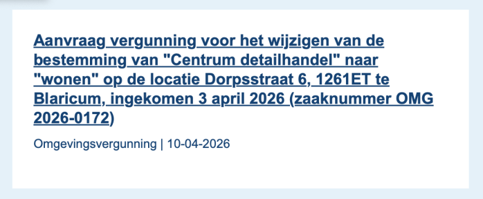 Oog op Blaricum 11 april 202611 april 2026 Delen kan hier: Share op Facebook (Opent in een nieuw venster) Facebook Delen op X (Opent in een nieuw venster) X E-mail een link naar een vriend (Opent in een nieuw venster) E-mail Afdrukken (Opent in een nieuw venster) Print Delen op WhatsApp (Opent in een nieuw venster) WhatsApp Meer Delen op Threads (Opent in een nieuw venster) Threads Vind-ik-leuk Aan het laden... Gepubliceerd door Oog op Blaricum Bekijk alle berichten van Oog op Blaricum Gepubliceerd 11 april 202611 april 2026