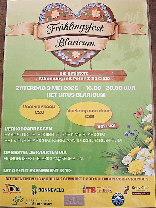 In de agenda Oog op Blaricum agenda 21 april 202621 april 2026 https://oogopblaricum.blog/wp-content/uploads/2026/04/lentefeest.mp4 Delen kan hier: Share op Facebook (Opent in een nieuw venster) Facebook Delen op X (Opent in een nieuw venster) X E-mail een link naar een vriend (Opent in een nieuw venster) E-mail Afdrukken (Opent in een nieuw venster) Print Delen op WhatsApp (Opent in een nieuw venster) WhatsApp Meer Delen op Threads (Opent in een nieuw venster) Threads Vind-ik-leuk Aan het laden... Gerelateerd Gepubliceerd door Oog op Blaricum Bekijk alle berichten van Oog op Blaricum Gepubliceerd 21 april 202621 april 2026
