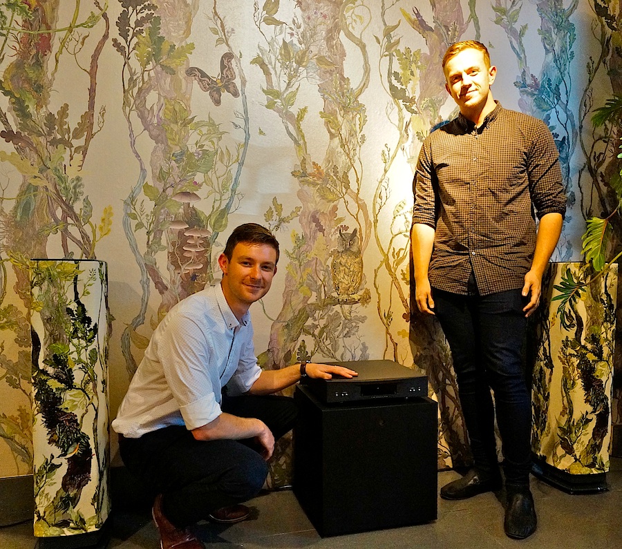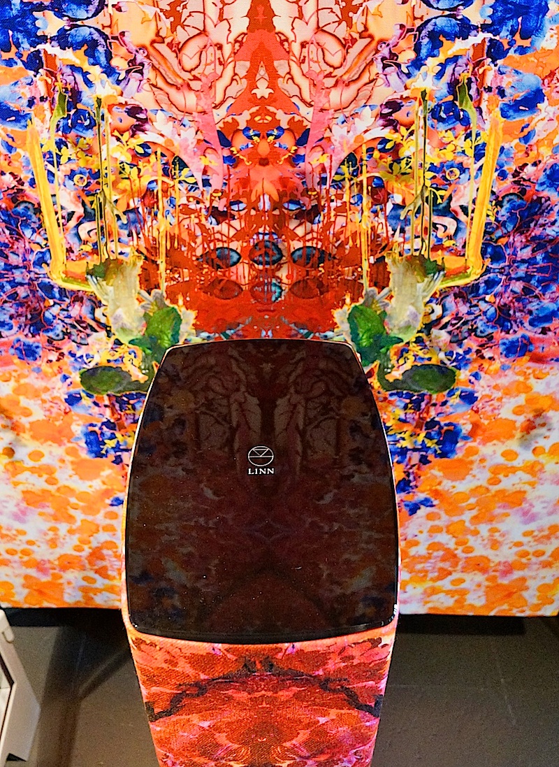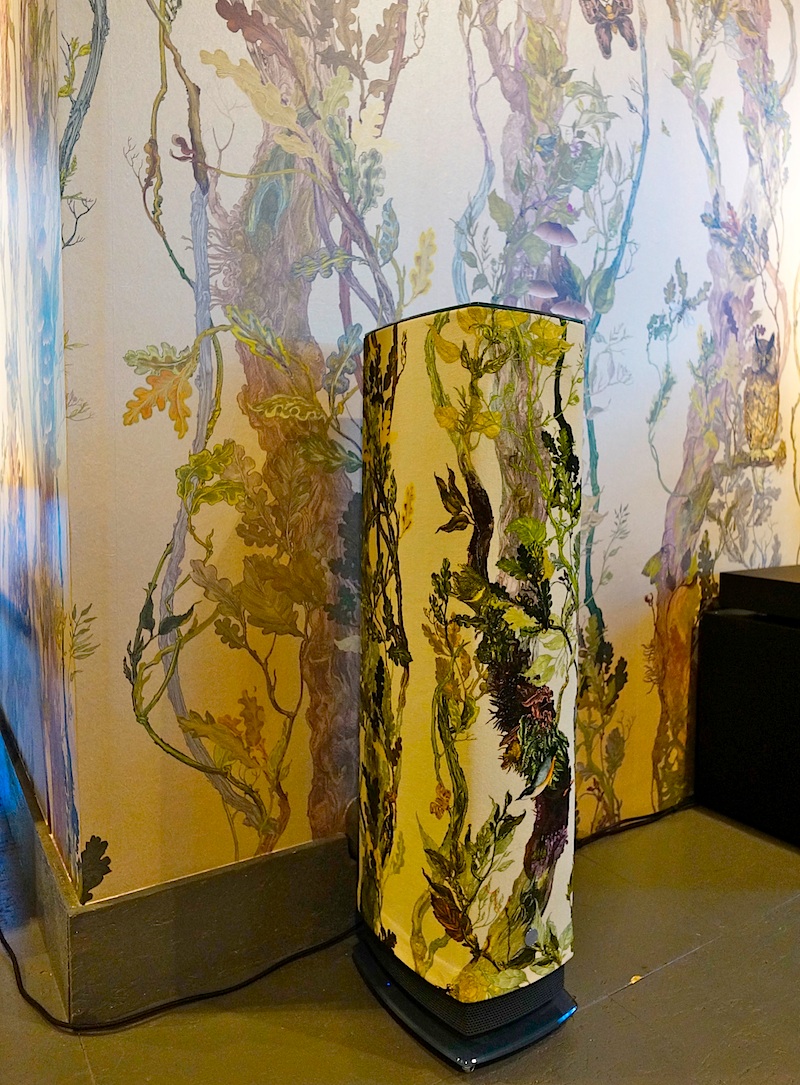 Bij StudioErikGutter: luidsprekers van Linn, gestyled met de dessins van Timorous Beasties.