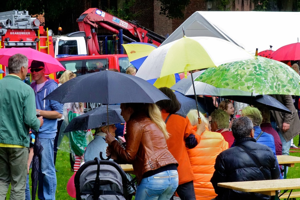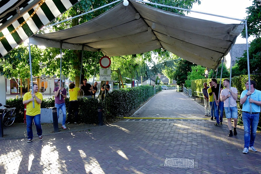 Gisterenavond vond weer de traditionele Tak-processie plaats. Daarbij wordt aan het begin van de eerste feestavond van de Kermisweek de overkapping voor het buitenbiergebeuren op plechtig-vrolijke wijze stap voor stap en tap voor tap bij Café d’Ouwe Tak geplaatst. Ook dit jaar gaf de bijkans spirituele leegte aan hoe groot later de volte zou zijn. Het was zoals altijd een alles omvattend gebeuren.