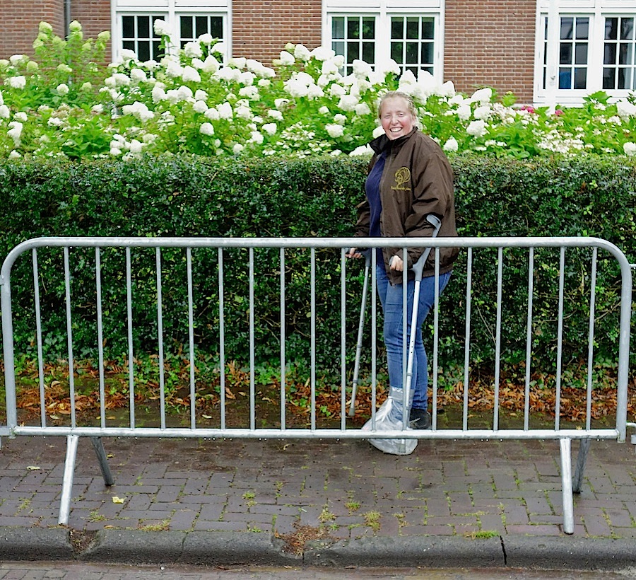 Betonnen parasolvoet op d’r voet – gebroken tenen, nagelgedoe. Komt allemaal wel weer goed.