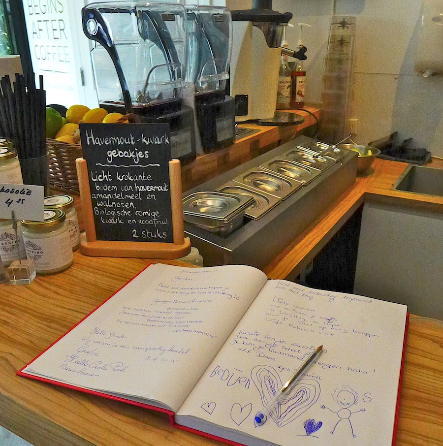 Bij Blushing ligt een boek waarin men beterschapswensen voor dorpsgenoot Gordon kan schrijven.