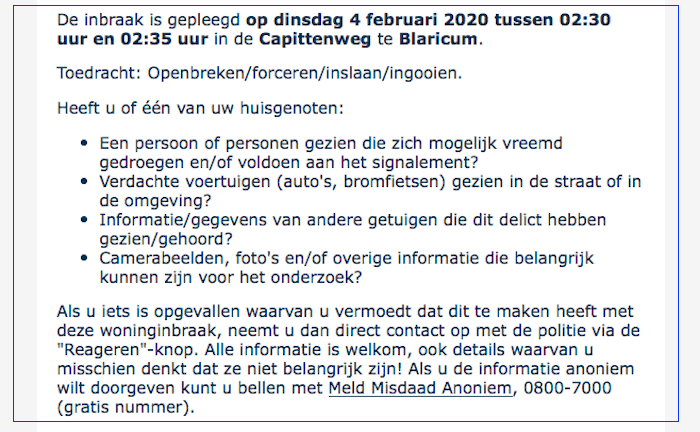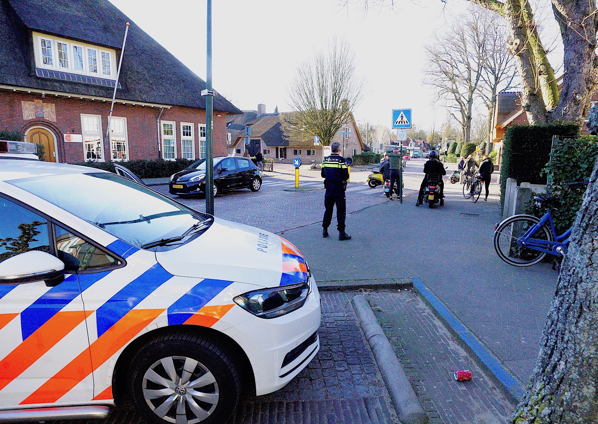Huizerweg, 17:15 uur: een groep jongeren die met scooters de gehele stoep in beslag nam, is door de politie weggestuurd. De groep (circa tien jongens en meisjes) stond daar uitgebreid te chillen, te snacken. Zodanig dat passanten en klanten van AH er niet of nauwelijks door konden – of dat niet durfden, en dus de parkeervakken kozen, of de rijbaan. Op een gegeven moment kwam dorpsgenote Monique van de Ven op de fiets aan en stalde deze links van de AH-ingang. Ze zag de groep en verzocht die uit elkaar te gaan en te vertrekken. Dat kwam haar op gesar en beledigingen te staan. Terwijl zij woedend de winkel inging, belde een omstander 112. Die kwam, en na wat geprotesteer en moeilijk doen over foto’s maken, vertrok de groep.