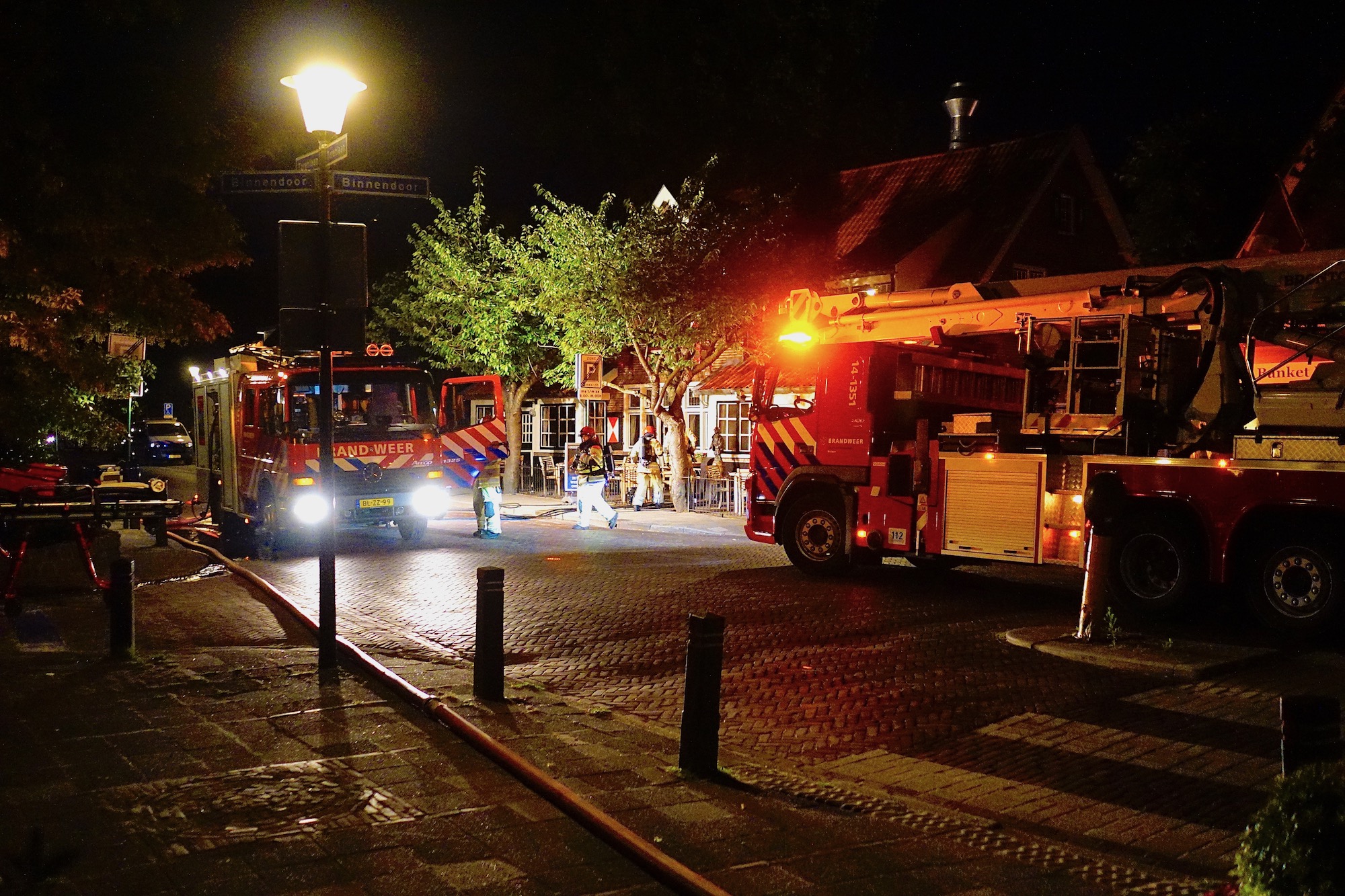 03:11 uur: melding van brand bij Moeke Spijkstra, om 03:23 uur opgeschaald naar middelbrand. Brandweer had moeite het afgesloten pand te betreden en zaagde de middenvoordeur open. Binnen bleek er brand te zijn in de keuken. Deze is volledig verwoest, de rest van het pand heeft aanzienlijke rook-, roet- en waterschade. Patrick Lommers: ‘Vandaag in ieder geval niet open.’ De traumaheli was uit voorzorg ook opgeroepen en landde op de eng aan de Bergweg. Persoonlijk letsel is evenwel niet opgetreden.