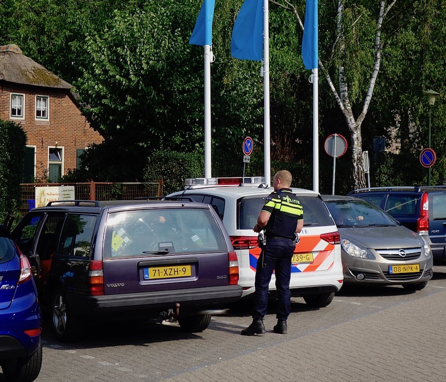Even voor 17:00 uur ontving de bestuurder van de Volvo (links) van de politie een stevige reprimande. Agenten in burger uit een andere regio (Opel, rechts) hadden geconstateerd dat zich op de parkeerplaats van AH in de afgesloten Volvo een valkparkiet in een kooi bevond. Omdat deze situatie begon te duren (uiteindelijk circa 40 minuten) en er derhalve sprake was/kon zijn van dierenkwelling, is de meldkamer gebeld. De agent die ter plaatse kwam stelde dat ‘de bestuurder gelukkig net kwam aanlopen, zodat ik niet een raam hoefde te breken. Mede daardoor is het geven van een proces-verbaal achterwege gebleven – wel is er een flinke reprimande uitgedeeld en zal het voorval op naam worden geregistreerd. De temperatuur is de auto was extreem hoog.’