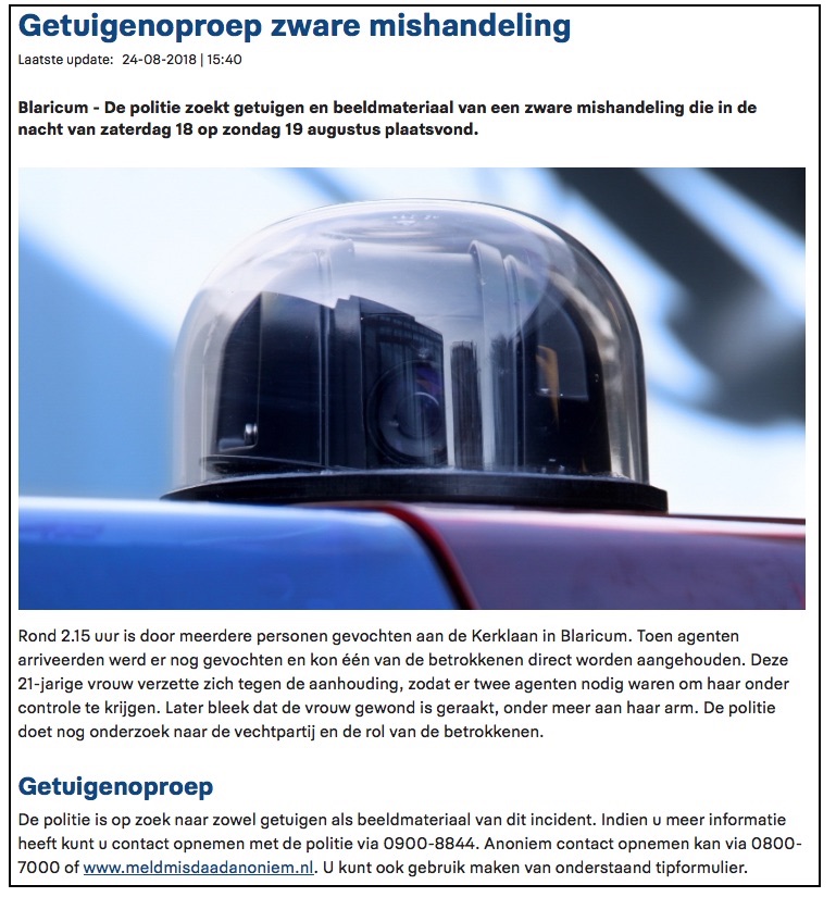 Hangt ergens een politielint? Dan is dat niet voor niks. Niemand mag daar onderdoor lopen. Bent u van mening dat voor u een uitzondering gemaakt moet worden? Spreek dan een agent aan en vraag het. De politie bepaalt. U niet.’