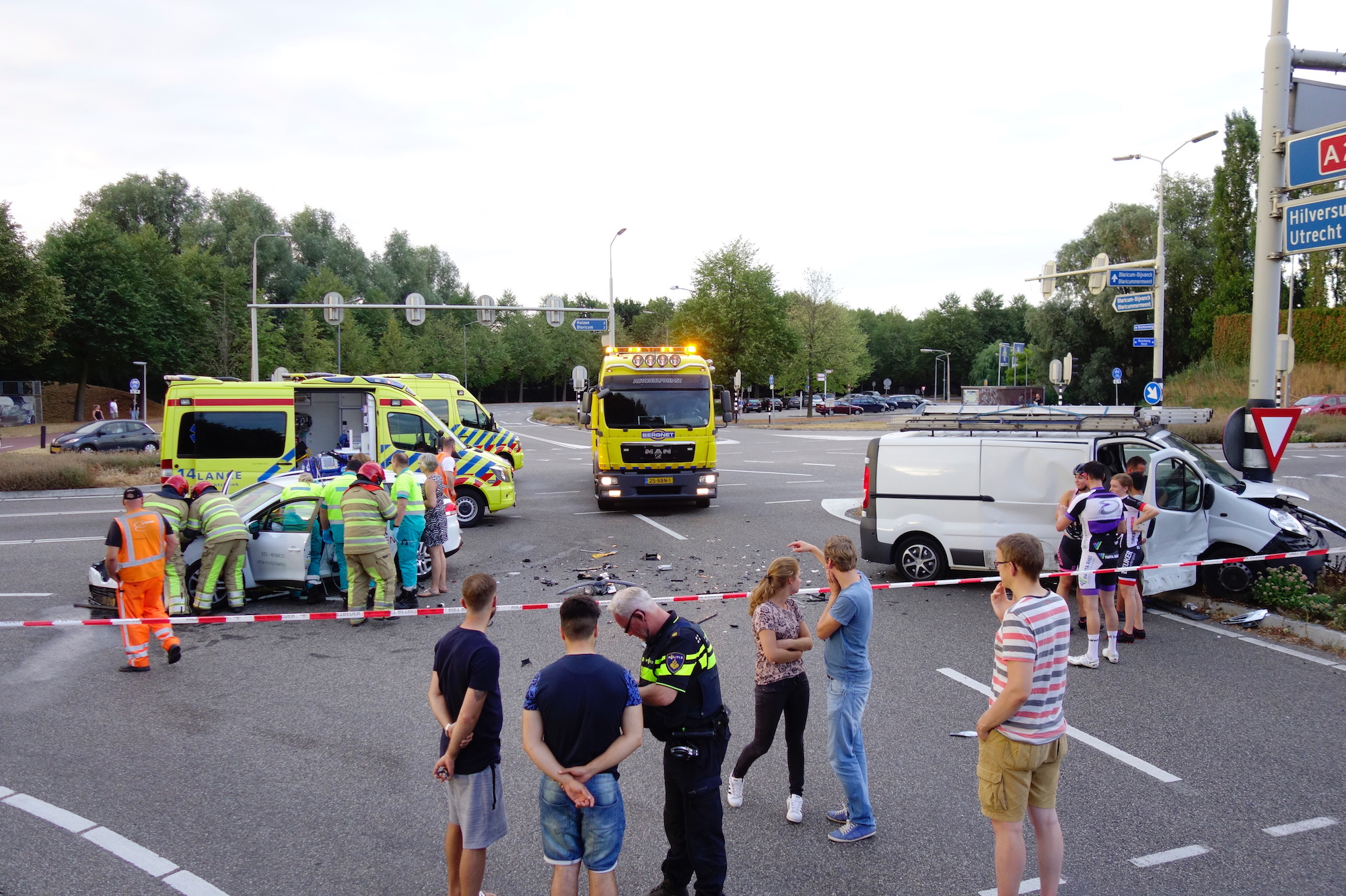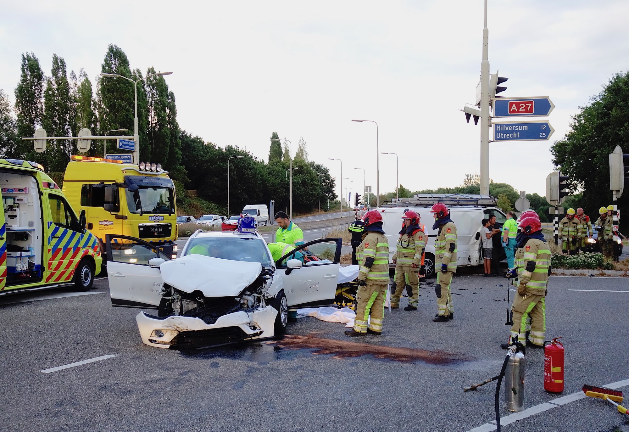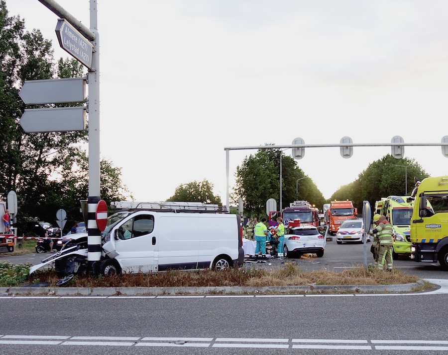 20:24 uur: een personenauto en een bestelbusje kwamen op genoemde kruising met elkaar in botsing. Waarschijnlijk een kwestie van ‘door rood’. De bestuurder van de personenauto is met letsel afgevoerd. Beide voertuigen lijken total loss.