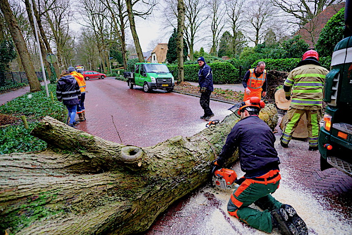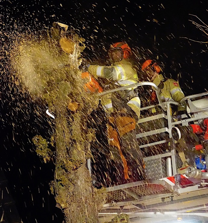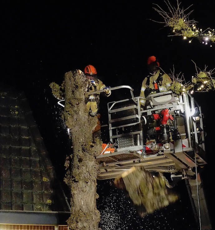Bij de Berg: Brandweer Blaricum verwijderde gevaarlijke takken.
