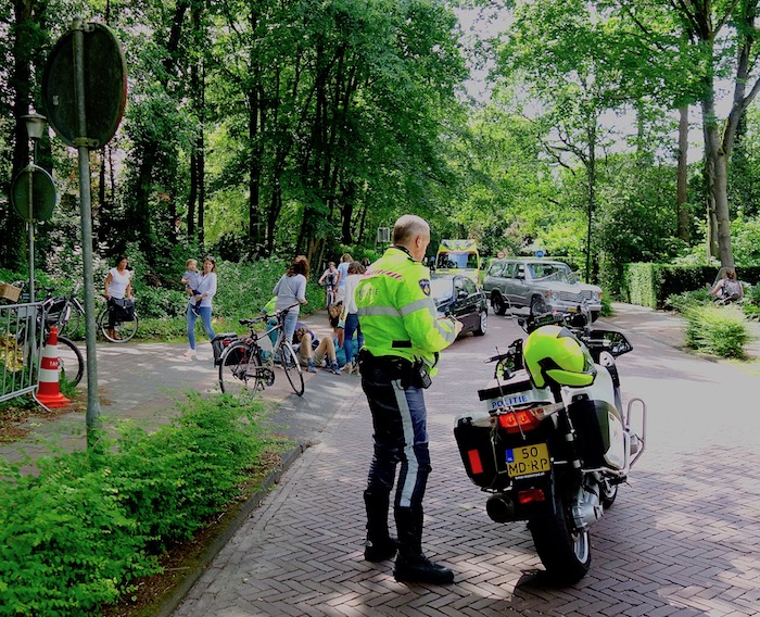 Naarderweg/Holleweg, 15:47 uur: een afslaande auto verleende geen voorrang aan een mountainbiker op het fietspad.