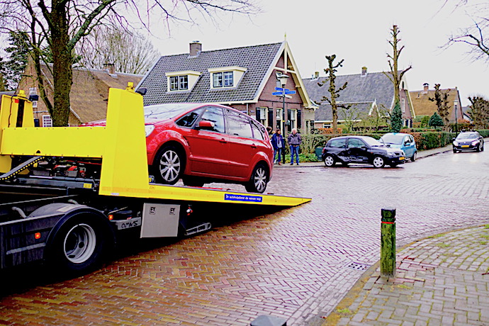 De zwaar gehavende Citroën (hier) is door Bergnet afgevoerd.