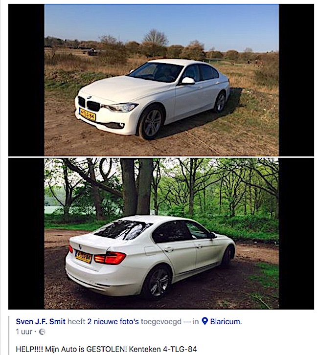 Vannacht is deze BMW gestolen vanaf de Driftlaan. De auto is rond 02:15 uur over de Hilversumseweg langs de kentekenregistratie gereden.