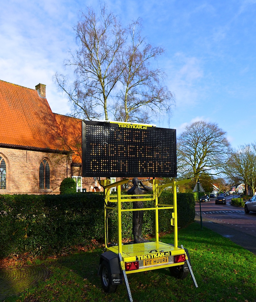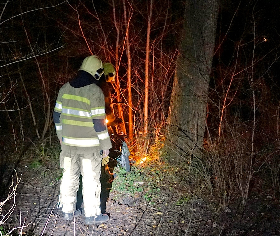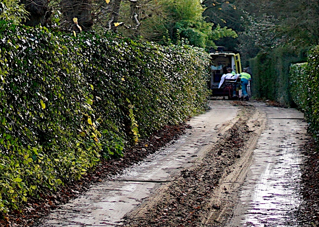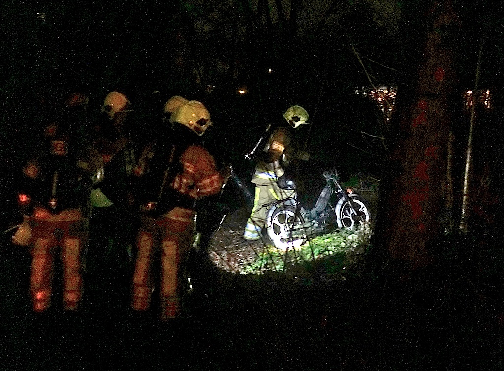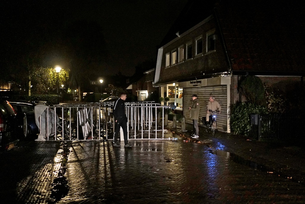 18:55 uur, Schoolstraat. Politie en brandweer waren na een kwartier nog niet gearriveerd – kennelijk vond de gebelde meldkamer het ondanks een toezegging niet nodig de diensten in te zetten. Gelukkig kwam de door Oog gebelde eigenaar wel en die heeft een en ander inmiddels netjes opgeruimd. Geen gewonden noch schade aan geparkeerde auto’s.