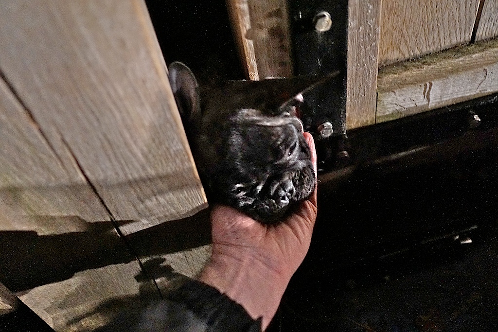 Puk de bulldog was klem komen te zitten tussen draaihek en staander. Was er met z’n dikke koppie tussendoor gekomen, maar terug ging niet meer. Oog verleende met hand kopsteun totdat …