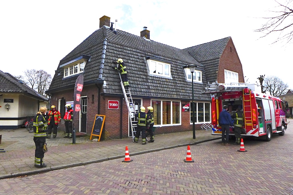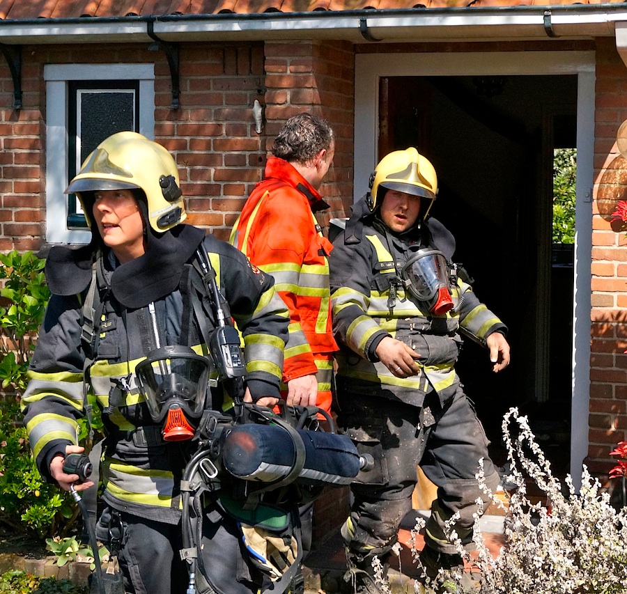Tweede Molenweg: monteur van Liander kwam na melding van gaslucht bij pand. Had naar eigen zeggen nog nooit meegemaakt dat zijn indicator ‘zo snel zo ver’ uitsloeg. De gealarmeerde Brandweer was om 14:35 uur ter plaatse en constateerde in de aanvoerleiding in de kruipruimte een gat. Dat is gedicht, het energiebedrijf gaat de leiding vervangen. Goed afgelopen. Dennis (tweede foto rechts) die in de kruipruimte het probleem heeft verholpen, had nadien wel trek in een flesje water.
