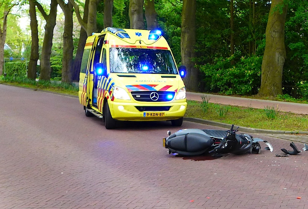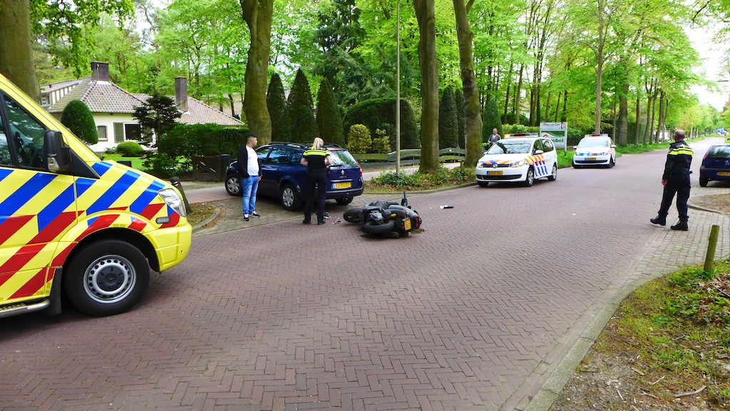 14:49 uur, Torenlaan: auto reed richting Laren en sloeg bijj inrit nr. 63 linksaf om te keren. Scooter met onbekende snelheid kon de auto niet meer ontwijken. Scooterrijder met onbekend letsel met ambu naar ziekenhuis. De VOD kwam voor sporenonderzoek.