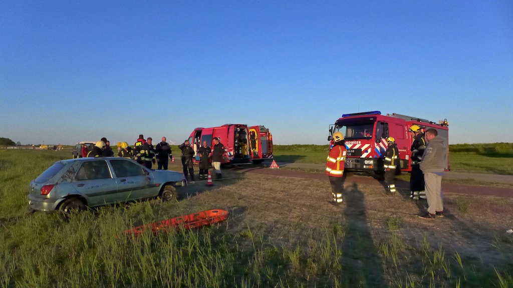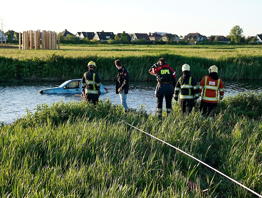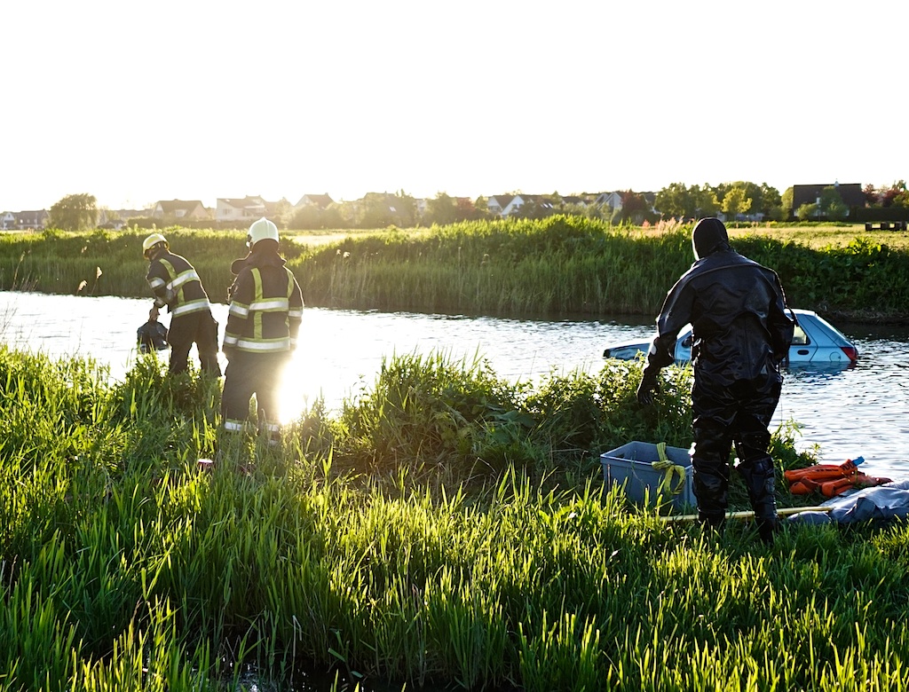 Stichtseweg, nabij ’t Meenthuis: auto te water. Het ging om een oefening van de brandweer waar ook de duikploeg uit Nederhorst den Bergh aan deelnam.