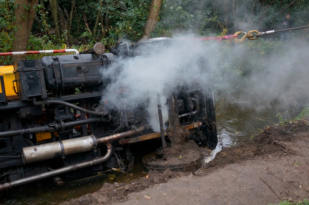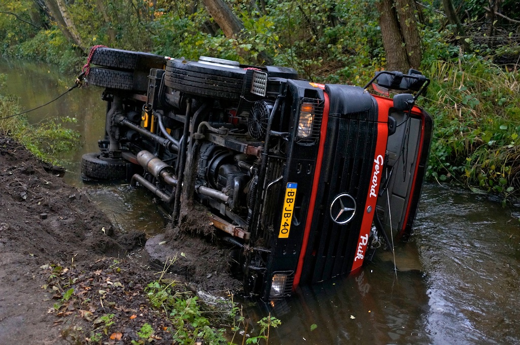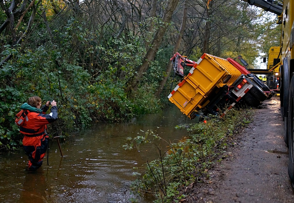 Rond kwart voor elf is een vrachtwagen van Fa. Puik uit Hilversum nabij de Waterschapslaan de Goyergracht-Noord ingegleden. De chauffeur is door de bijrijder uit de auto gehaald en met onbekend letsel afgevoerd. Bergnet had enkele uren nodig om de vrachtwagen weer op de kant te krijgen.