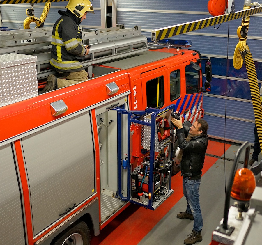 Prof. Van Reeslaan, 18:35 uur: schoorsteenbrandje. Vonkjes zonder vlammen. Zwarte Piet kan gewoon komen.