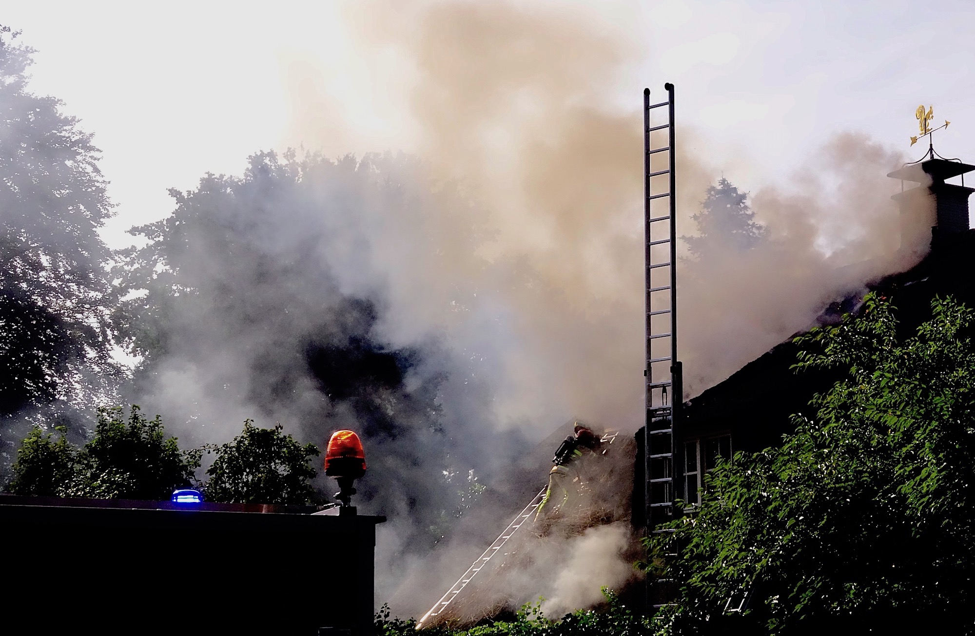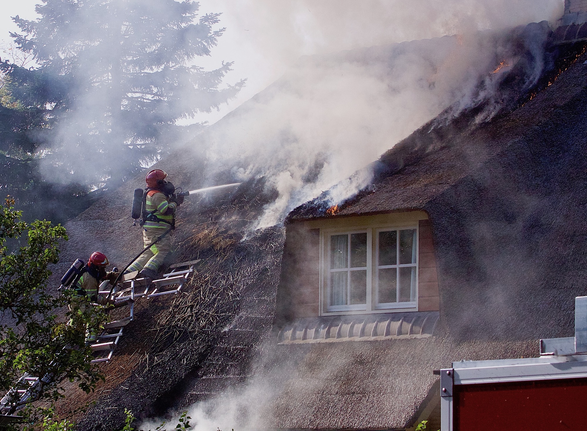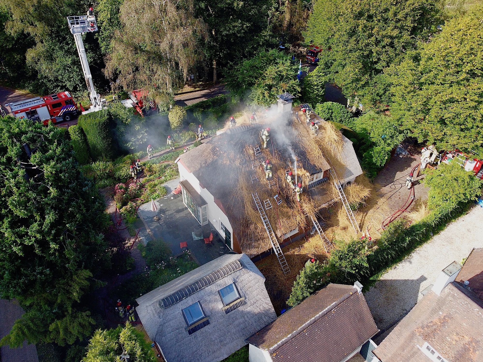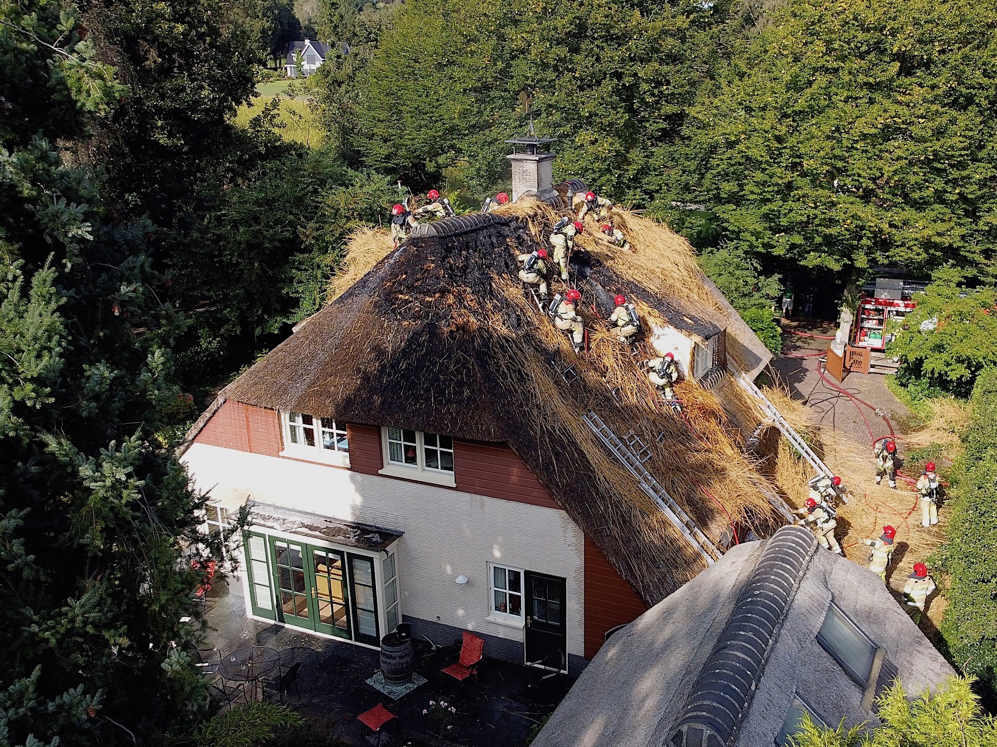 Brandweer redt villa met rieten kap (update oorzaak)