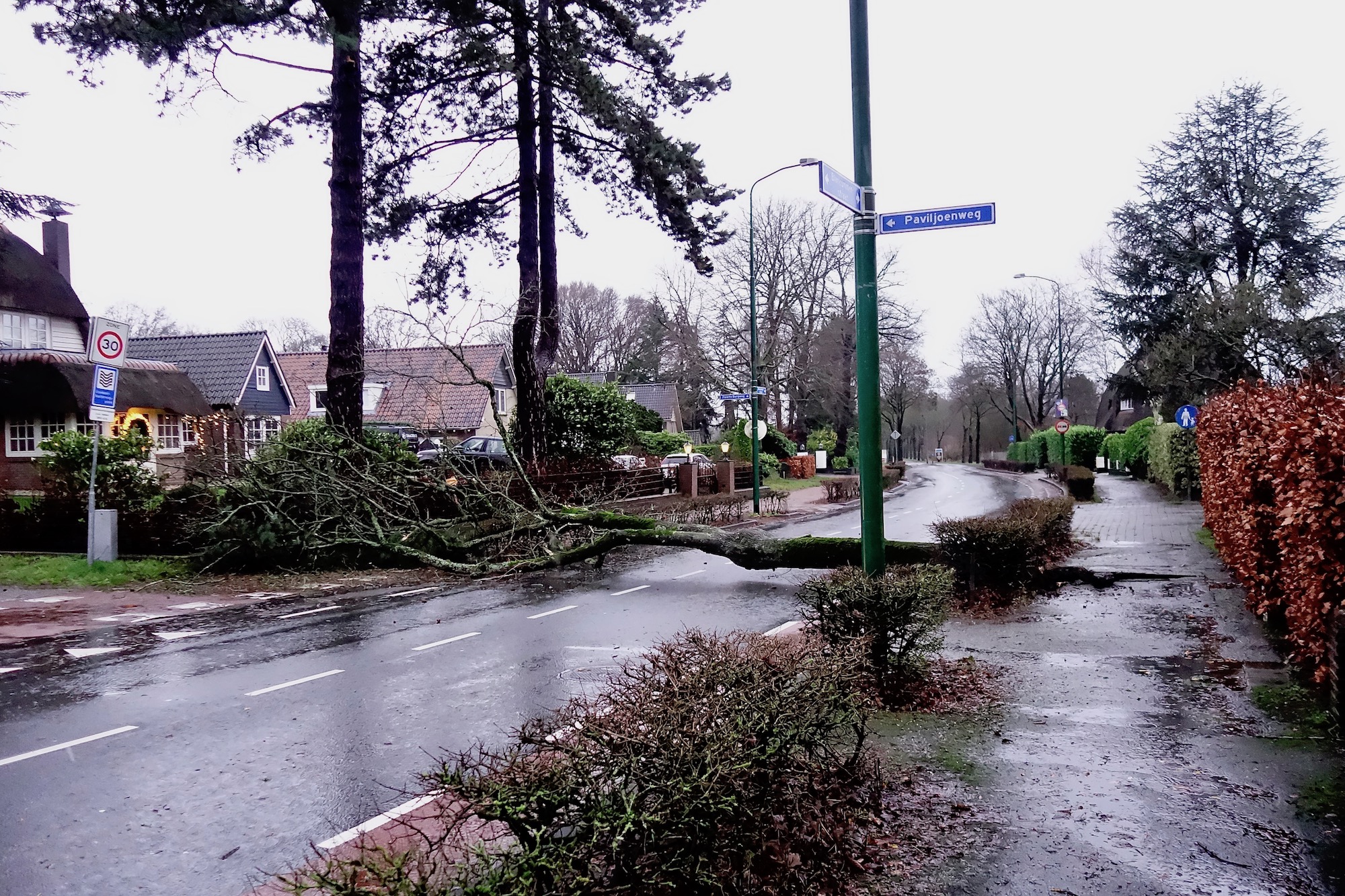 Dokter Catzlaan, 10:39 uur: boom over de weg. Opgeruimd door Brandweer Blaricum.